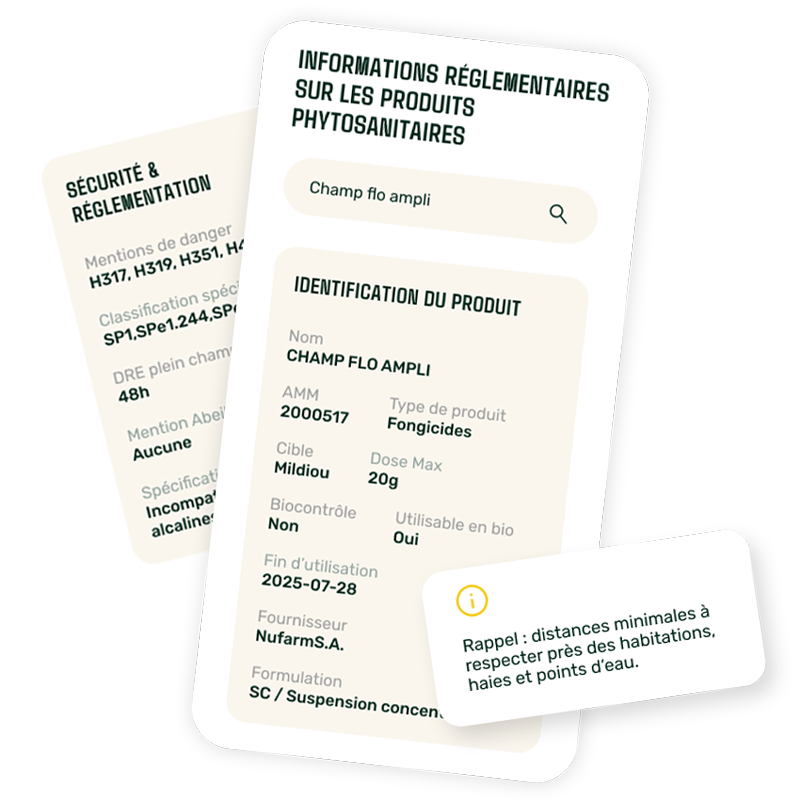 - Notifications (alertes risques météo, sanitaires, réglementation etc.)